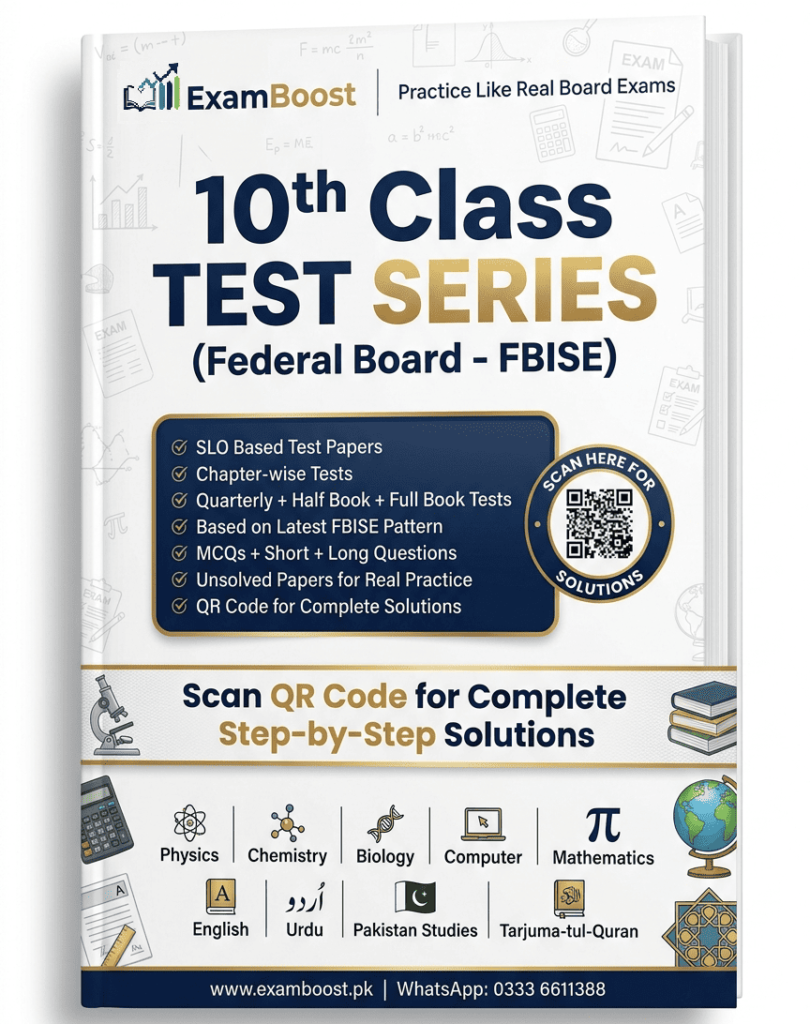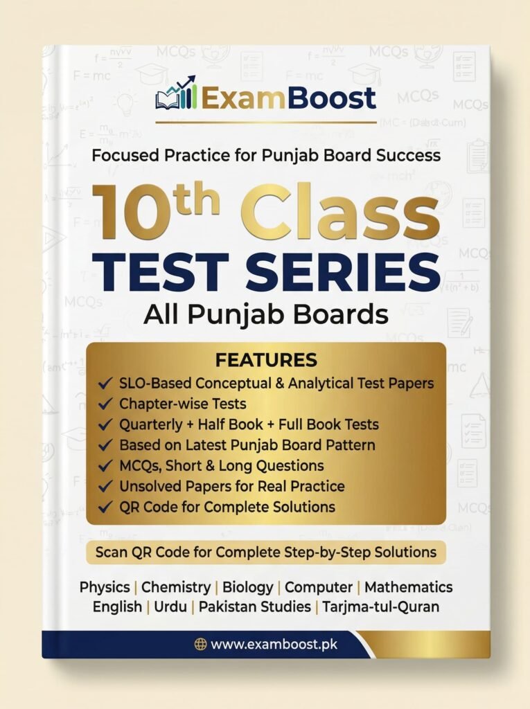 ExamBoost.pk is an online education store providing high-quality study resources for students across Pakistan. We offer Test Series, Notes, Past Papers, and Guess Papers for Punjab Board, Federal Board, KPK Board, and other major boards.