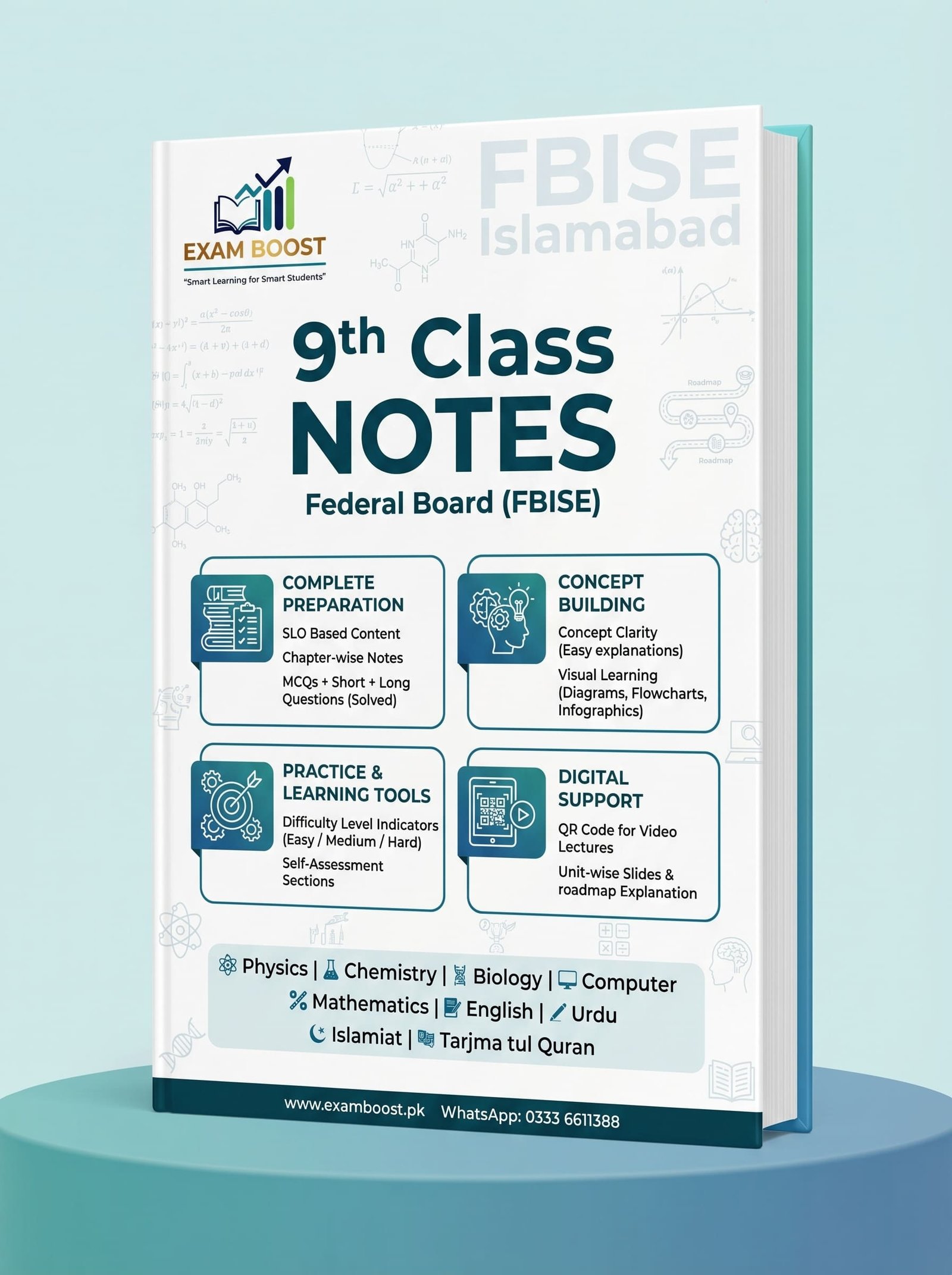 9th Class FBISE Notes by ExamBoost — professionally printed, home delivered, cash on delivery. Order karo — ghar pe aayein — marks laao!